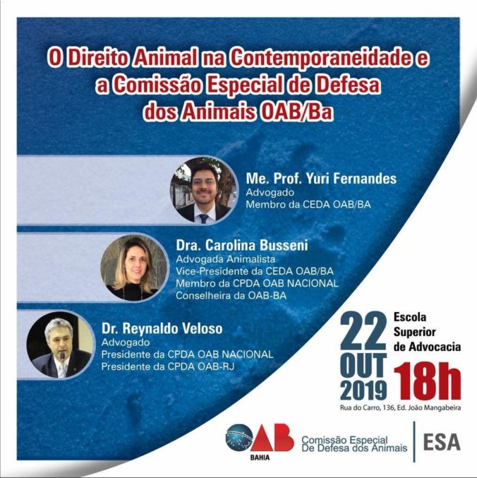 A palestra foi um sucesso. Apresentei o tema Direito dos Animais: Novos Paradigmas, onde descrevo as ações e as perspectivas das lutas por eles.
