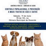 Estou no Município de Resende, onde participarei amanhã da Audiência Pública sobre Controle Populacional e Prevenção de Maus-tratos.