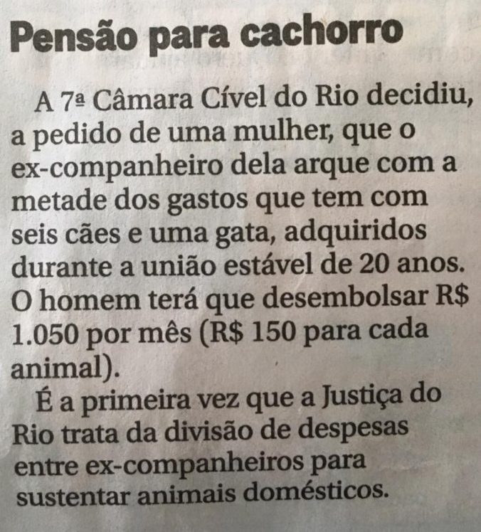 Aos poucos a justiça retira o animal do status jurídico de bem para se tornar um membro da família. Isso nós já sabemos. Faltava o judiciário entender desta maneira.