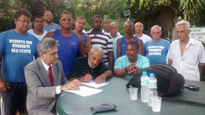 Em 16/12/2015 na Ilha de Paquetá, com os charreteiros, na assinatura do Protocolo de Intenções e Acordo entre a CHARRETUR e a CPDA/OAB. Caminhamos para o fim das charretes e dos cavalos escravos.