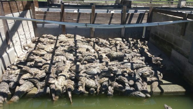 De acordo com o proprietário do criadouro, a carne dos animais seria destinada ao consumo e o fechamento de um abatedouro resultou na superpopulação dos jacarés.
