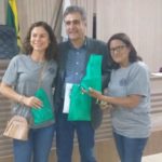 Na véspera do evento, visitei a Biblioteca Municipal e como de praxe, fiz a doação do nosso livro. A bibliotecária Valeria Delvaux está comigo na foto.