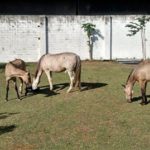 A égua Pacífica, submetida a crueldades frequentes na carroça, está ótima e já “adotou” um potrinho e uma potrinha, que também muito sofriam nas mãos de marginais.
