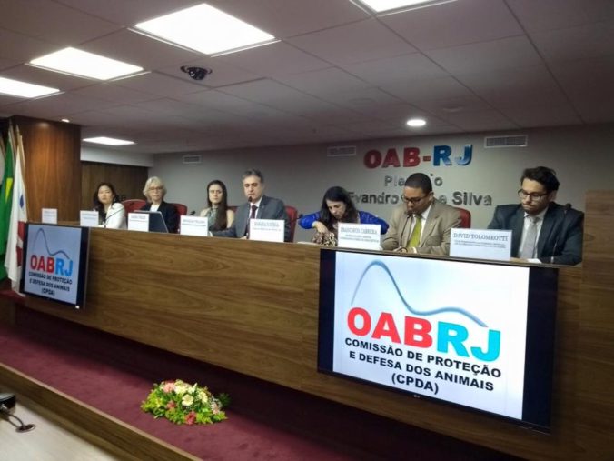 Juíza Rosana Navega, Maíra Velez (CPDA/OAB-SP), Elisabeth MacGregor(Fórum Animais), Patricy Sato(Veterinária), Francisco Carrera(CPDA/OAB-RJ) e David Tolomeotti (Comissão Governança de Oceanos OAB-RJ).
