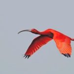 O guará vive em bando e suas revoadas são atração turística em estados do Norte. Ele se alimenta de caranguejos.