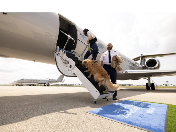 Desde 11 de abril, donos de cachorros podem reservar assentos em jatos particulares Gulfstream 550. Essas aeronaves podem acomodar até dez cães, juntamente com seus tutores.