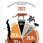Mais de 1,2 mil espécies da fauna brasileira estavam ameaçadas de extinção em 2022, sendo que 465 estão na categoria vulnerável, 425 em perigo, 358 criticamente em perigo e uma está extinta na natureza. Em 2014, eram 1.173 espécies sob risco de extinção e, em 2003, eram 627.