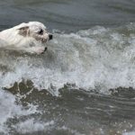 - A dog swims at Baubeach in Maccarese, near Rome on August 12, 2014. At Beaubeach people accompanied by dogs can enjoy the beach during summertime. AFP PHOTO / GABRIEL BOUYS