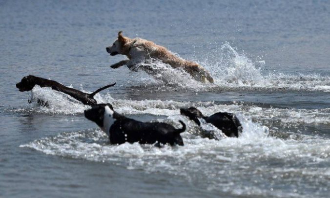 - Dogs play at Baubeach in Maccarese, near Rome on August 12, 2014. At Beaubeach people accompanied by dogs can enjoy the beach during summertime. AFP PHOTO / GABRIEL BOUYS