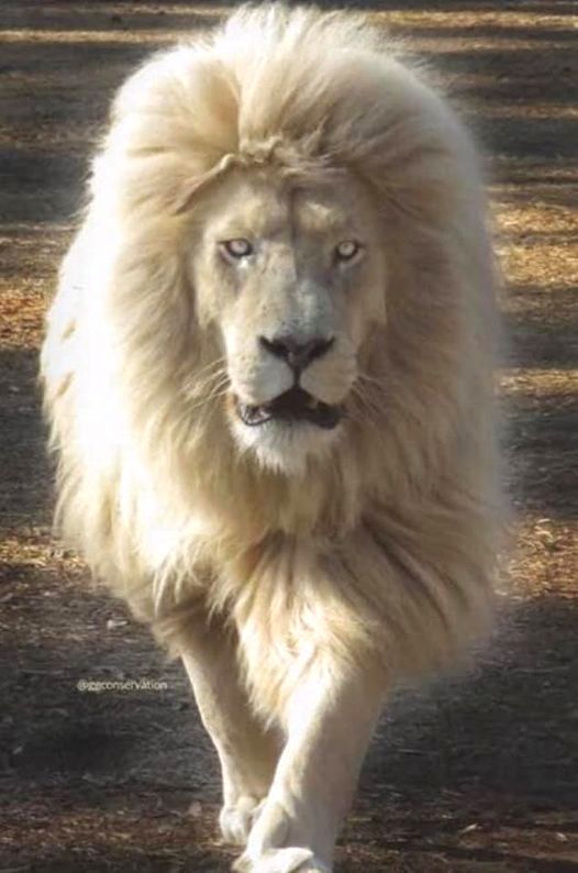 “Além da belíssima juba, os pelos e os olhos claros que se destacam é devido a um gene branco recessivo que somente alguns leões carregam”, explicou a tratadora.